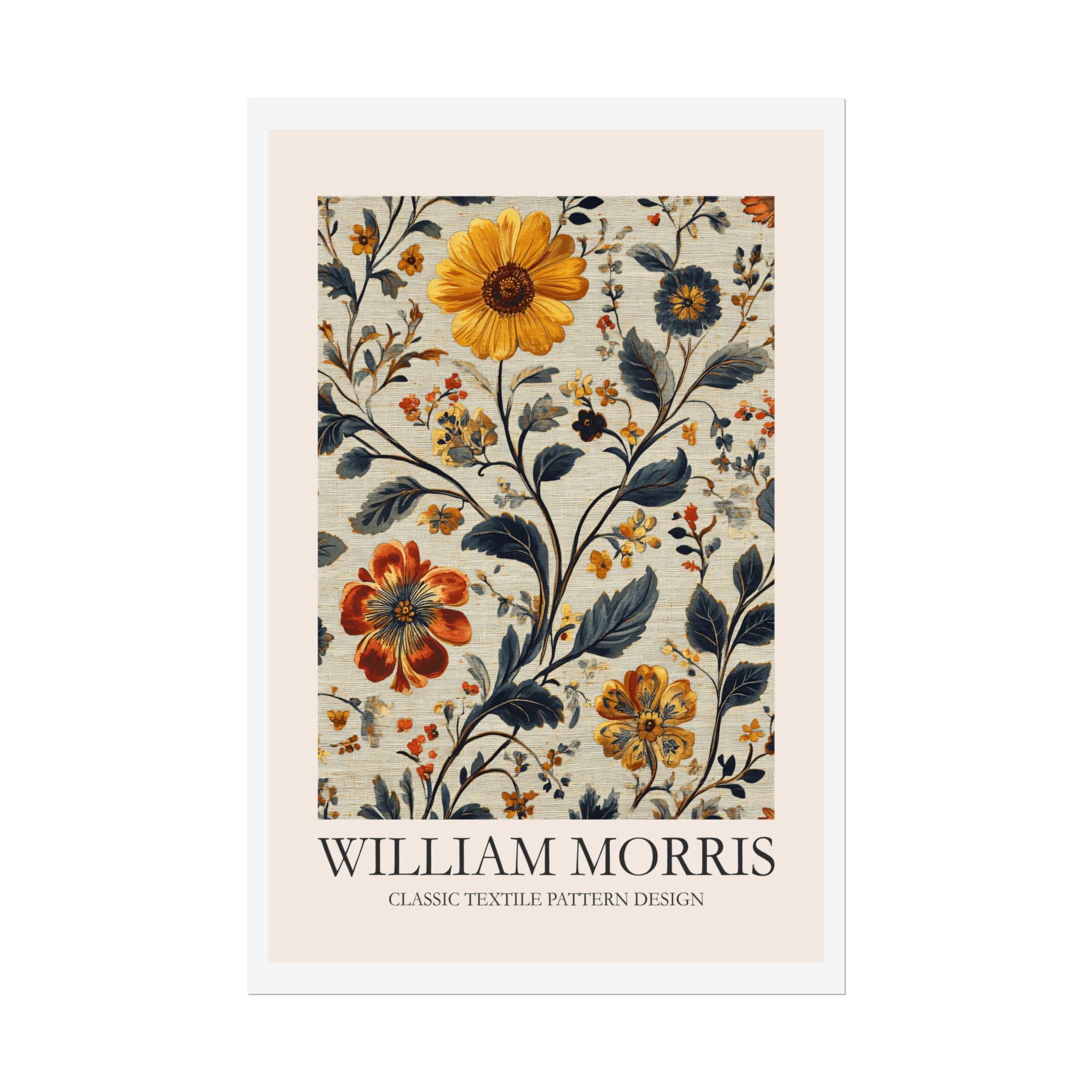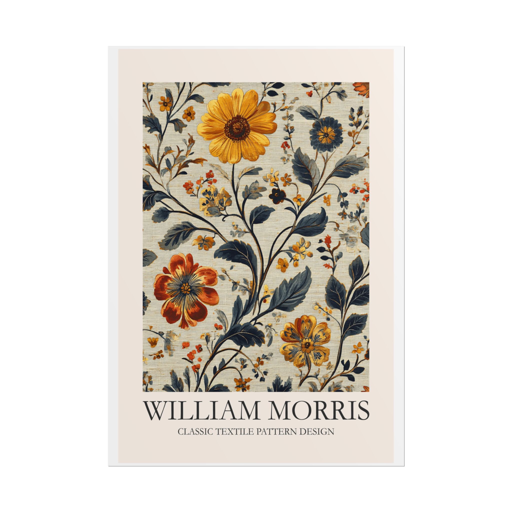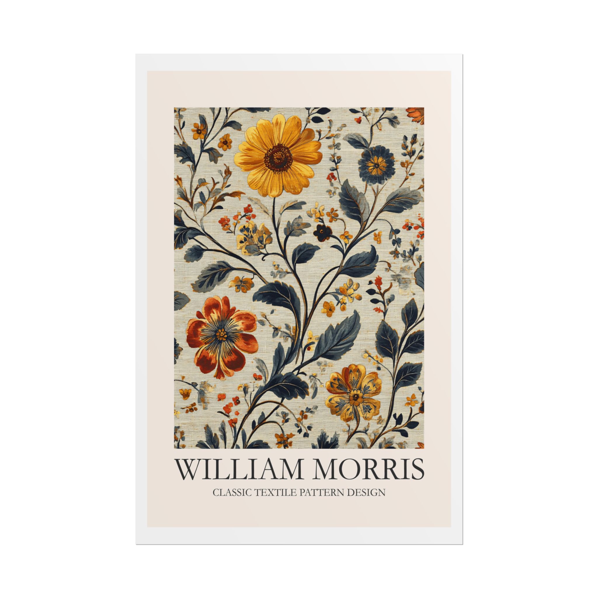 This Fine Art Print brings a William Morris-inspired pattern into your space with timeless, handcrafted charm. The intricate floral-and-foliage repeat reads like a page from a vintage textile sampler — dense, rhythmic, and quietly ornate. Rolled for safe delivery, it’s ready to be framed, mounted on a clipboard, or wrapped around a dowel to become a focal point on a gallery wall or in a cozy reading nook. The design settles naturally into rooms that value calm craftsmanship: think sunlit studies, cottage living rooms, or studios where texture and history matter. Subtle color shifts and crisp pattern edges keep the print feeling alive whether you choose a soft matte for a muted, painterly look, a semi-gloss for vivid depth, or a textured fine art sheet for tactile warmth. This is a piece for people who love layered interiors, pattern-driven palettes, and small details that reward close attention.