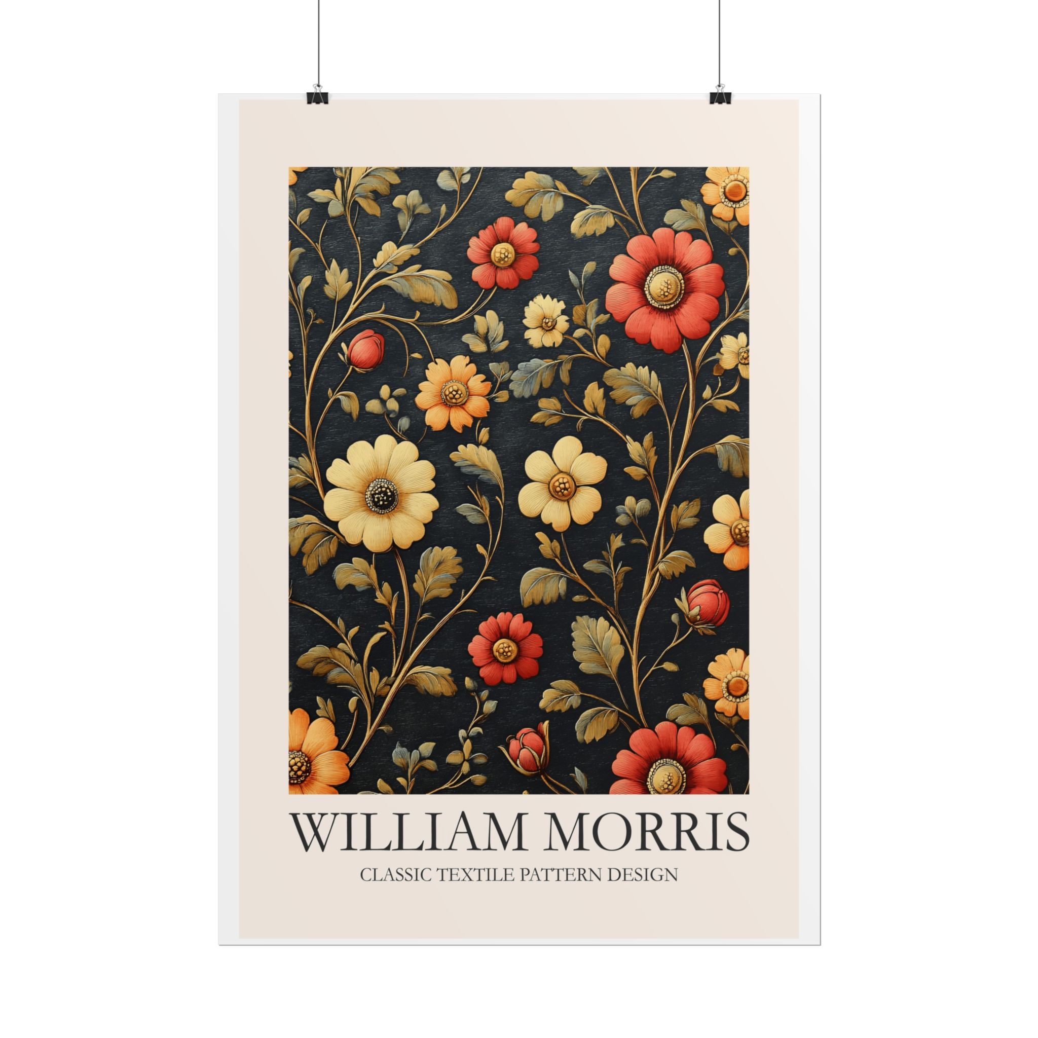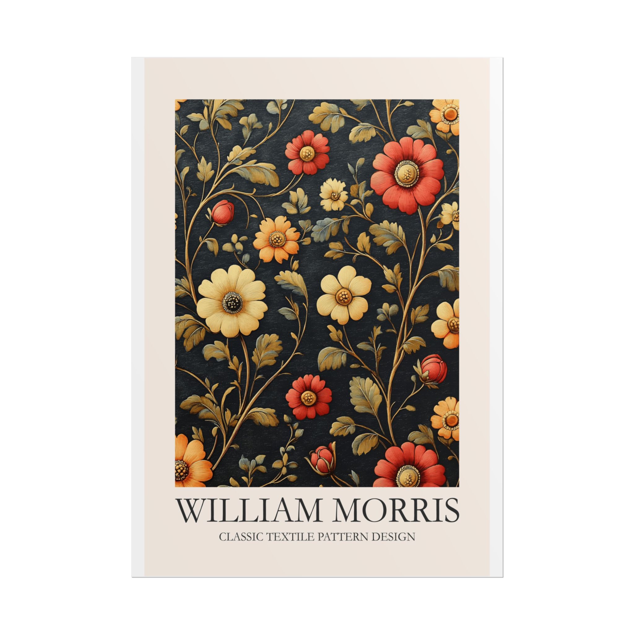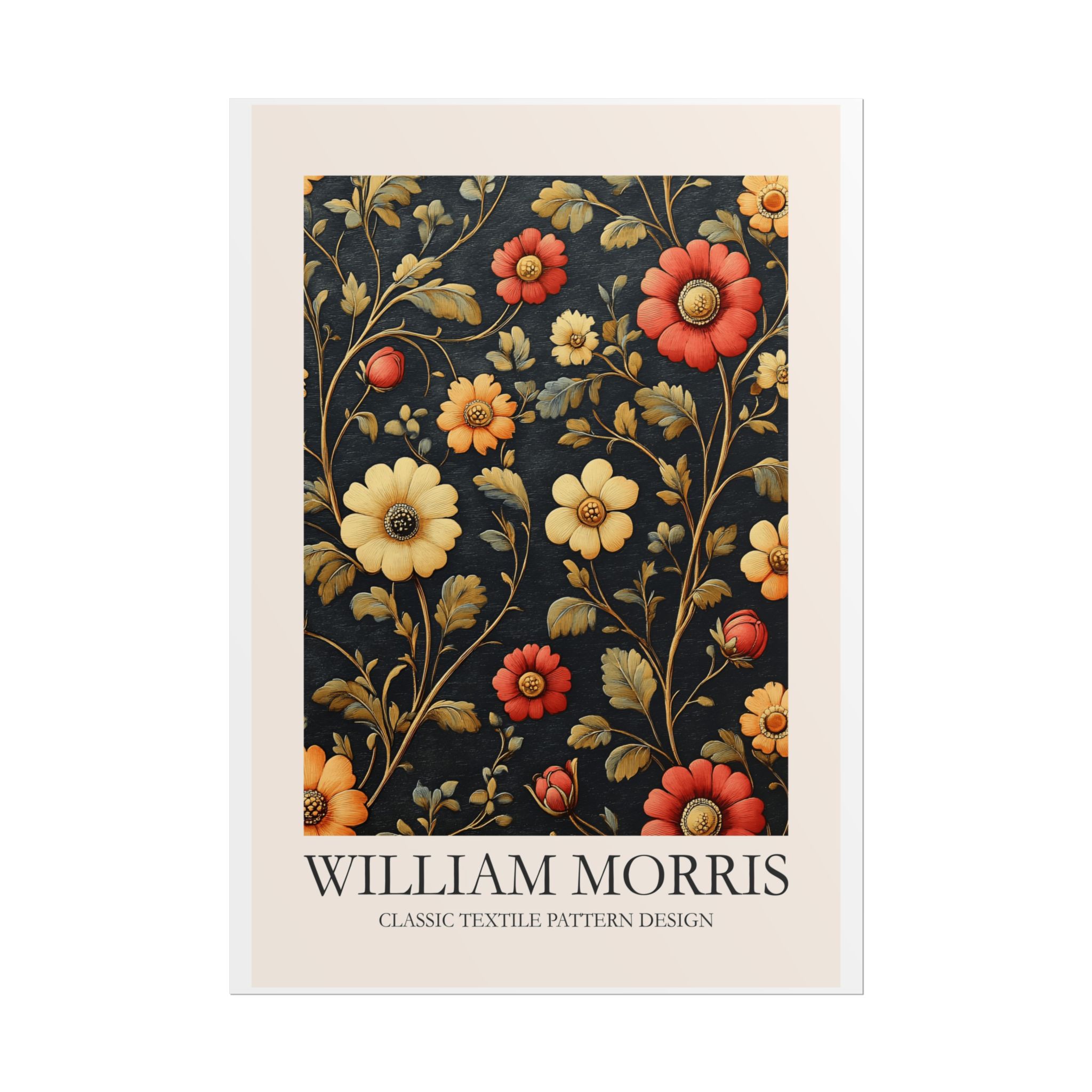 This Fine Art Print brings a William Morris-inspired pattern into your space with timeless, handcrafted charm. The intricate floral-and-foliage repeat reads like a page from a vintage textile sampler — dense, rhythmic, and quietly ornate. Rolled for safe delivery, it’s ready to be framed, mounted on a clipboard, or wrapped around a dowel to become a focal point on a gallery wall or in a cozy reading nook. The design settles naturally into rooms that value calm craftsmanship: think sunlit studies, cottage living rooms, or studios where texture and history matter. Subtle color shifts and crisp pattern edges keep the print feeling alive whether you choose a soft matte for a muted, painterly look, a semi-gloss for vivid depth, or a textured fine art sheet for tactile warmth. This is a piece for people who love layered interiors, pattern-driven palettes, and small details that reward close attention.