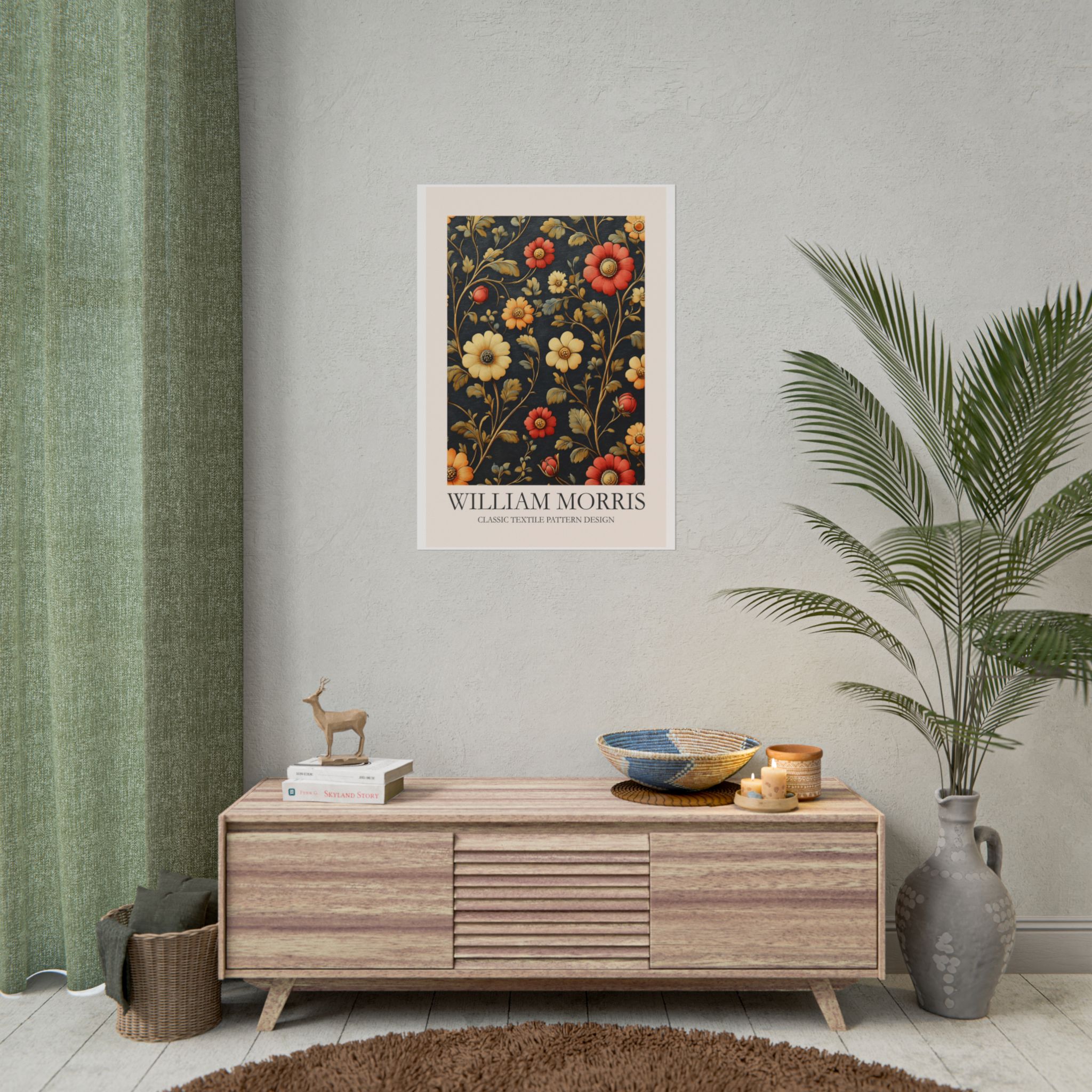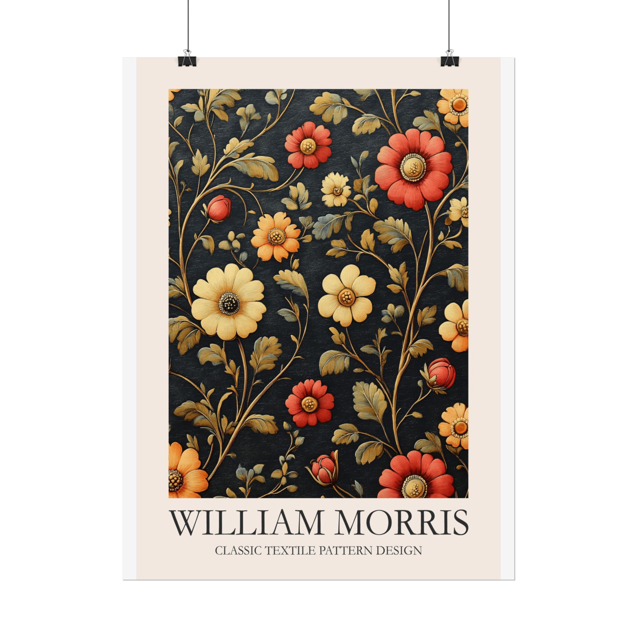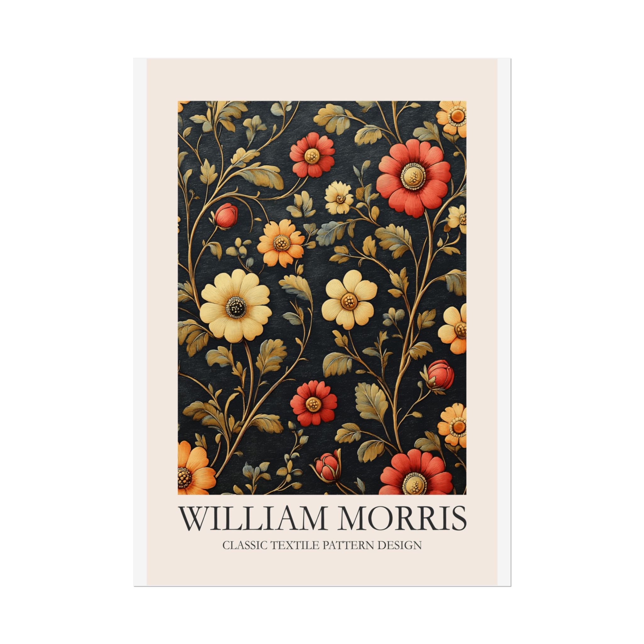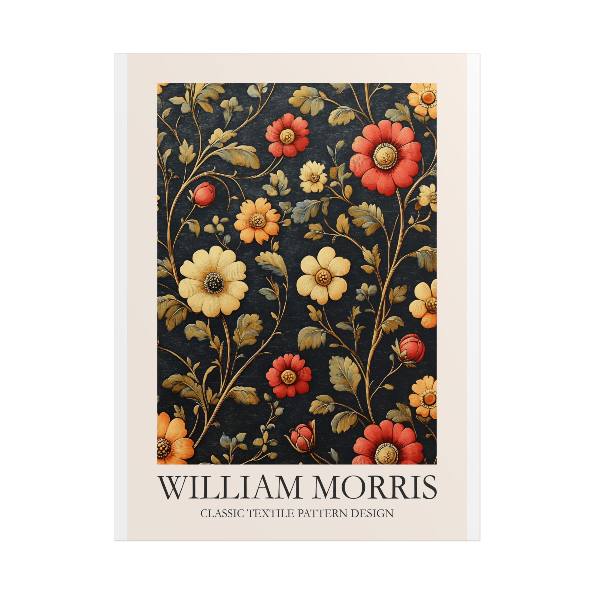 This Fine Art Print brings a William Morris-inspired pattern into your space with timeless, handcrafted charm. The intricate floral-and-foliage repeat reads like a page from a vintage textile sampler — dense, rhythmic, and quietly ornate. Rolled for safe delivery, it’s ready to be framed, mounted on a clipboard, or wrapped around a dowel to become a focal point on a gallery wall or in a cozy reading nook. The design settles naturally into rooms that value calm craftsmanship: think sunlit studies, cottage living rooms, or studios where texture and history matter. Subtle color shifts and crisp pattern edges keep the print feeling alive whether you choose a soft matte for a muted, painterly look, a semi-gloss for vivid depth, or a textured fine art sheet for tactile warmth. This is a piece for people who love layered interiors, pattern-driven palettes, and small details that reward close attention.